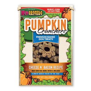 Pumpkin Crunchers Apple & Cranberry Ingredients:Pumpkin, oatmeal, barley flour, oat flour, apples, cranberries, potato flour, vegetable oil, cane molasses, cinnamon, vanilla. Guaranteed Analysis:Crude Protein 10% (min) Crude Fat 8% (min), Crude Fiber 8.5% (max) Moisture 8.5% (max) Pumpkin Crunchers Sweet Potato Ingredients:Pumpkin, oatmeal, barley flour, oat flour, potato flour, vegetable...