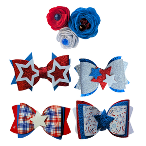 Show off your dog's pride with our mixed media Star Spangled Bow Collection