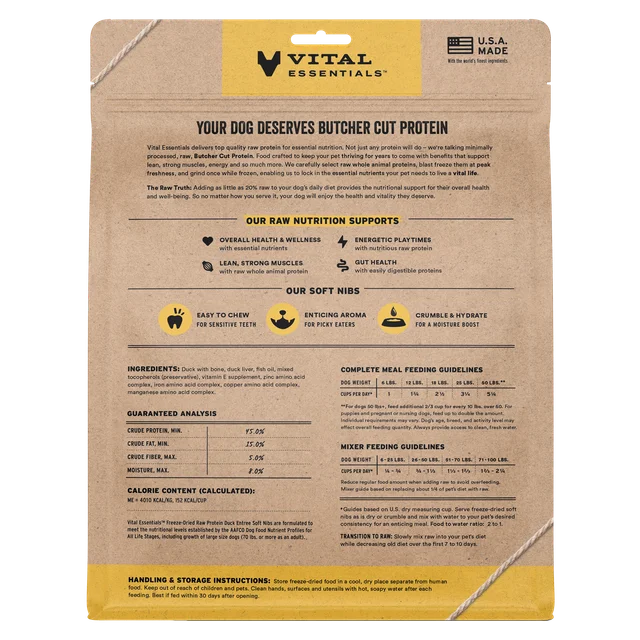 Vital Essentials Raw Freeze-Dried Soft Nibs Duck Entree & Mixer for Dogs
