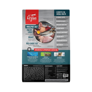 ORIJEN Guardian 8 is a nourishing food specially formulated to address 8 common cat ailments through quality ingredients. Because of the abundance of fresh and raw WholePrey animal ingredients in this diet, less supplementation is needed to support your cat’s health for a lifetime. With 90%* premium animal ingredients, and 2/3 of those being fresh and raw, Guardian 8 contains nutritious ingredients that help support your cat’s overall health with 8 benefits. These benefits include Immune support, Digestive health support, Healthy skin & coat support, Muscle maintenance, Heart health, Joint health, Brain & cognitive function, and Eye health.