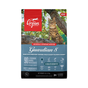 ORIJEN GUARDIAN 8 ADULT CAT FOOD is formulated to meet the nutritional levels established by the AAFCO Cat Food Nutrient Profiles for adult maintenance.