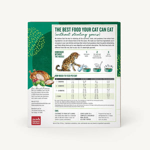 Crafted with a vet nutritionist, this 100% human grade grain-free dehydrated cat food recipe is packed with tasty free range chicken, boosted with probiotics to support digestion, and finished with a splash of nutritious bone broth to add extra flavor and boost protein. To meet our human grade standard, we use the same whole foods you’d recognize in your own kitchen, and make this recipe in a human food facility. Simply add water to this healthy-yet-tasty recipe for a protein-packed, moisture-rich meal your cat will love.