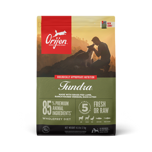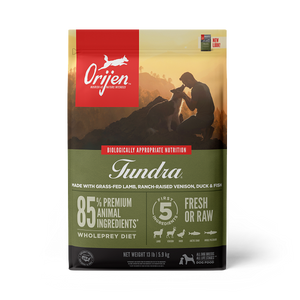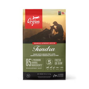 Dogs are ancestral carnivores, so their Biologically Appropriate diet is rich and varied in whole animal ingredients. ORIJEN® Tundra recipe provides your dog with the nourishing protein and nutrients they need, from grass-fed lamb, ranch-raised venison, duck & fish. With rich inclusions of Wholeprey animals, ORIJEN dog food is made with the most nutrient-dense, succulent parts of the prey to deliver the nutrition dogs need.