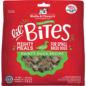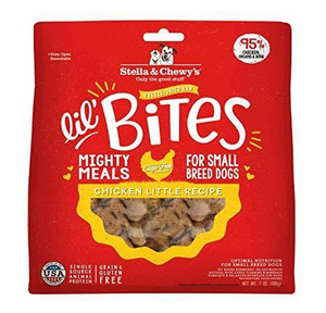 - Help your small breed dog thrive with Stella Chewy's Lil' Bites mighty meals freeze-dried raw dog food. Each tasty, high-protein, morsel of chicken Little recipe is the perfect bite size for small dogs