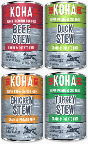 KOHA Minimal Ingredient Stew for Dogs is a moisture-rich recipe packed with cuts of meat in a savory gravy. With meat as the first ingredient and no carb-loaded fillers like grains, peas, potatoes, or corn that can lead to digestive issues, KOHA minimal ingredient stews are ideal for dogs with food sensitivities.