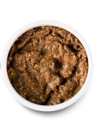 Humanely raised chicken, chicken bone broth, pumpkin, carrots, spinach , red lentils, agar agar, cranberries, garbanzo beans (chickpeas), chicory root, sunflower oil, coconut oil (preserved with mixed tocopherols), salt, dried kelp , potassium chloride, dandelion greens, choline chloride, taurine, turmeric, Vitamin a supplement, vitamin d3 supplement, vitamin e supplement, d-calcium pantothenate, thiamine mononitrate, riboflavin supplement, biotin, folic acid, vitamin b12 supplement, Zinc amino acid chelate , iron amino acid chelate, copper amino acid chelate , manganese amino acid chelate, sodium selenite