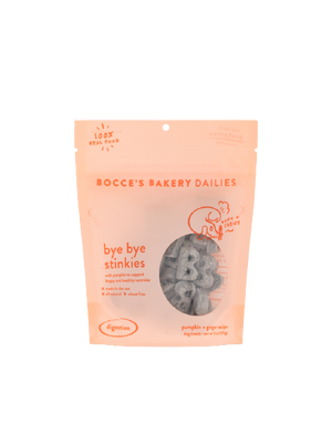 We are not the only ones in need of some daily TLC. Let's keep your pup feeling not a day over one, and extra fresh for those sloppy 'welcome home' smooches. Bye Bye Stinkies Dailies are loaded with fiber-rich pumpkin, savory ginger and charcoal to support daily digestion with every treat.