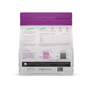 Ingredients: Goat heart, goat (with bone), goat liver, goat kidney, organic parsley, organic kelp, vitamin E supplement.