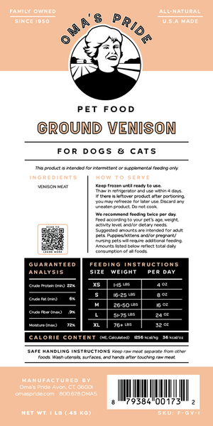 Oma's Pride Raw Frozen Ground Venison 1lb