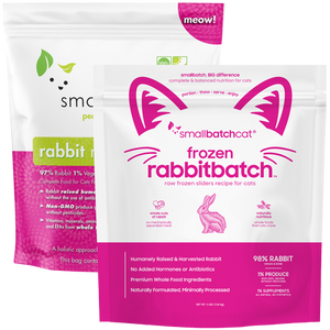 97% humanely raised and harvested rabbit, 1% organic produce, 2% natural supplements