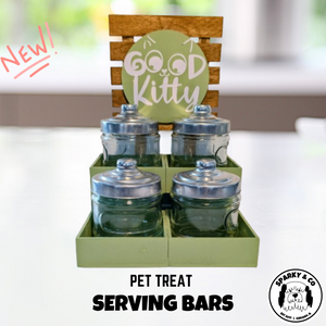 Your dog has more than one treat, right,? Have your pets favorite treats at the ready with our new handmade pet treat serving stations. Now you can showcase your pet's favorite treats with style!