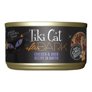 Chicken, chicken broth, chicken liver, chicken gizzard, chicken heart, duck, tricalcium phosphate, potassium chloride, choline chloride, magnesium sulfate, salt, taurine, ferrous sulfate, thiamine mononitrate (vitamin B1), vitamin E supplement, tuna oil, niacin (vitamin B3), zinc oxide, vitamin A supplement, biotin, vitamin B12 supplement, copper amino acid chelate, manganous oxide, calcium pantothenate, riboflavin supplement (vitamin B2), sodium selenite, pyridoxine hydrochloride (vitamin B6), folic acid, potassium iodide, vitamin D3 supplement