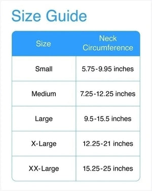 Heal up fast and protect your pet from itself with this e-collar from Vet Worthy. This soft and comfortable dog collar is designed to prevent your pet from scratching or biting wounds, hot spots, and other skin lesions for faster healing and recovery. It is translucent and does not interfere with your pet's peripheral vision, so they can still do their normal routines. Designed with an adjustable closure for a comfortable fit. help pets heal safely and quickly. This collar will keep them from licking and chewing surgery sites, hot spots, wounds or other irritations. This pet neck collar is easy to clean, you can wipe it with a damp cloth or wash it by hand with mild soap. Do not use hot water, and allow it to air dry. Available in 5 sizes. S Neck size (5.75in - 9.95in) M Neck size (7.25in - 12.25in) L Neck size (9.5in - 15.5in) XL Neck size (12.25in - 21.0in) XXL Neck size (15.25in - 25.0in)