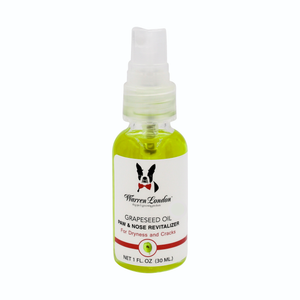 Warren London Grapeseed Oil is a premium revitalizing spray that helps nourish your dog's dry, chapped, cracked, or crusty nose and paws. This antioxidant rich grapeseed oil blend is packed with natural essential oils and vitamins A, B, B5, D and E which rejuvenate the worst irritations. Proudly made in the USA with grapes from Tuscany, Italy.