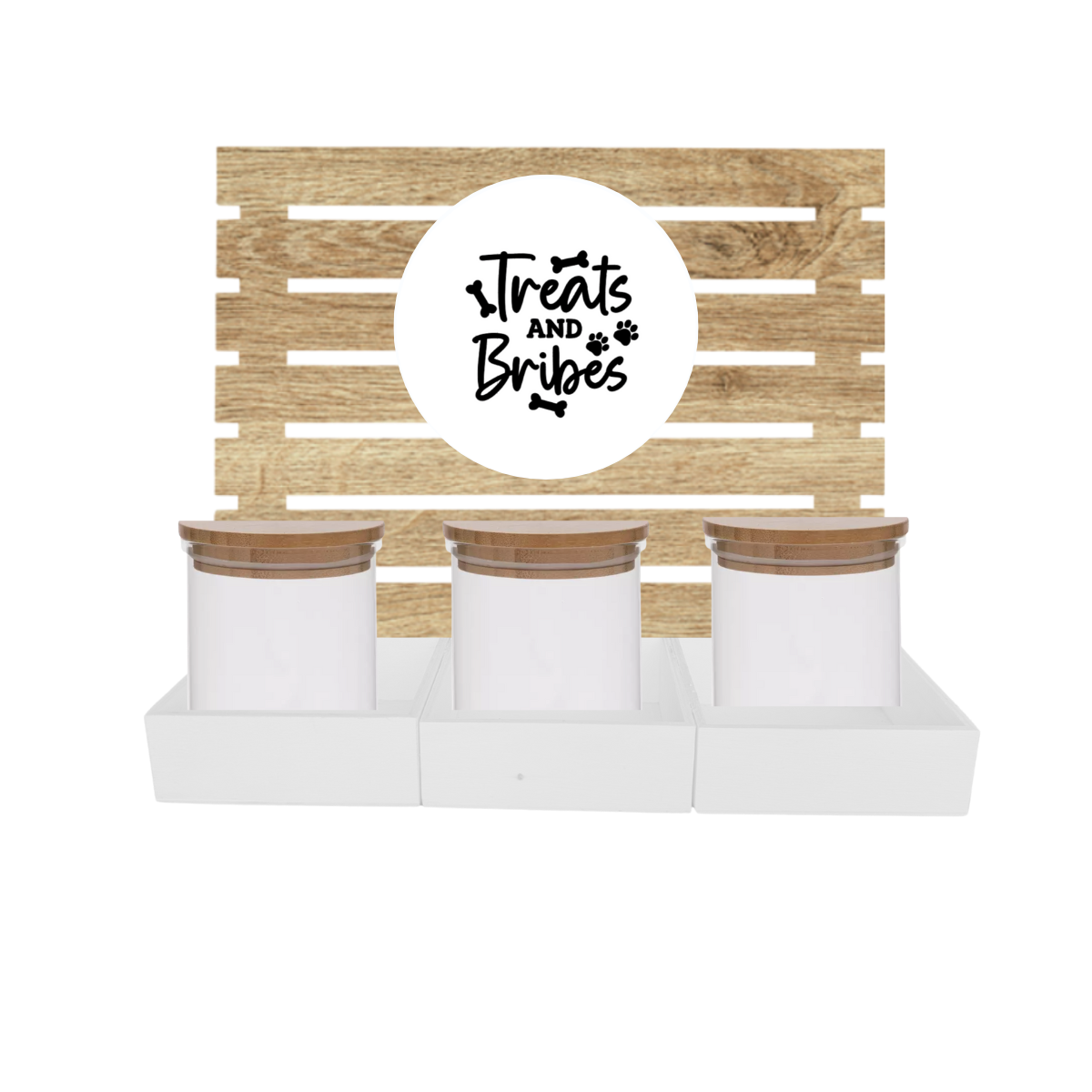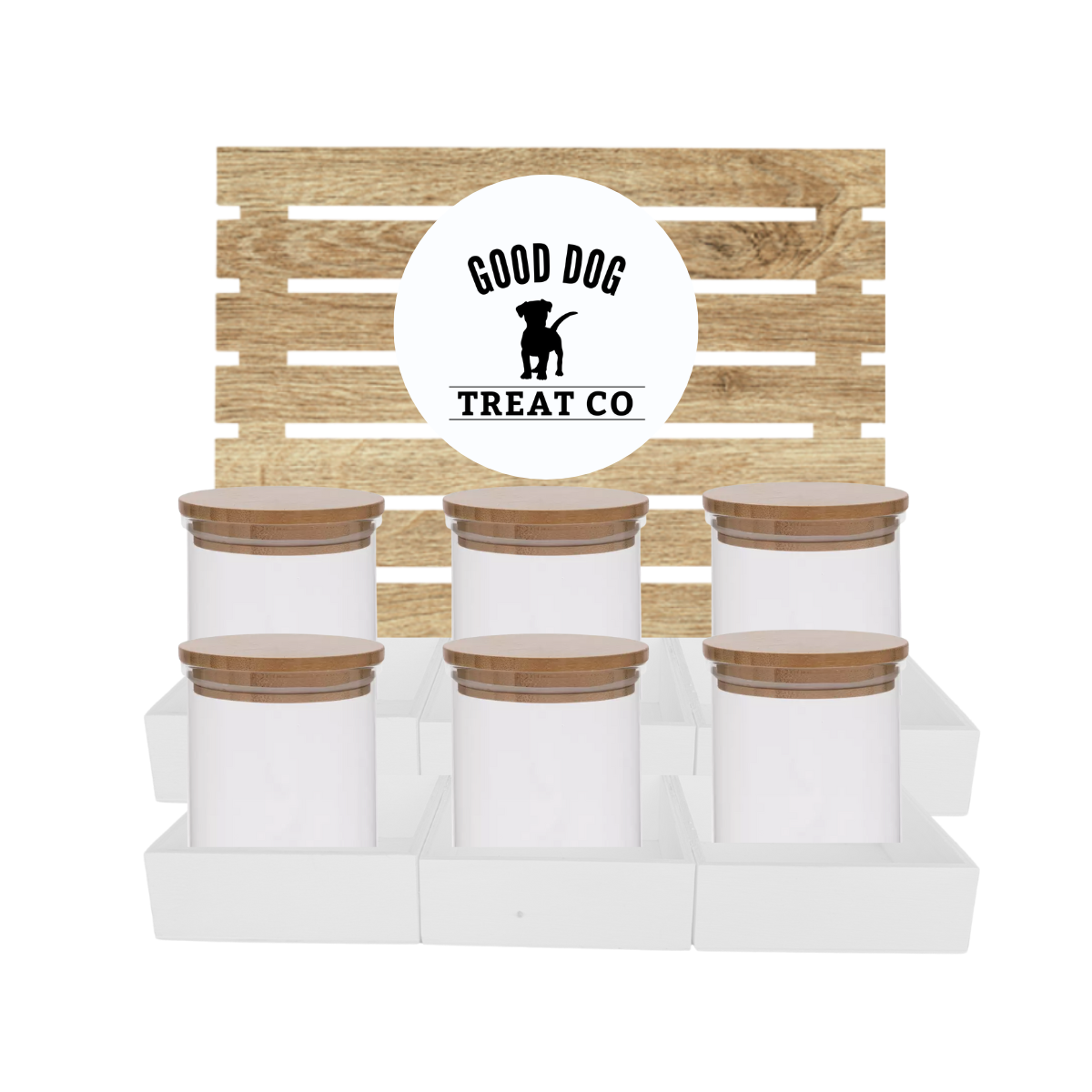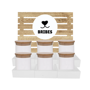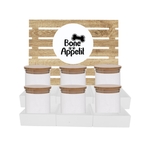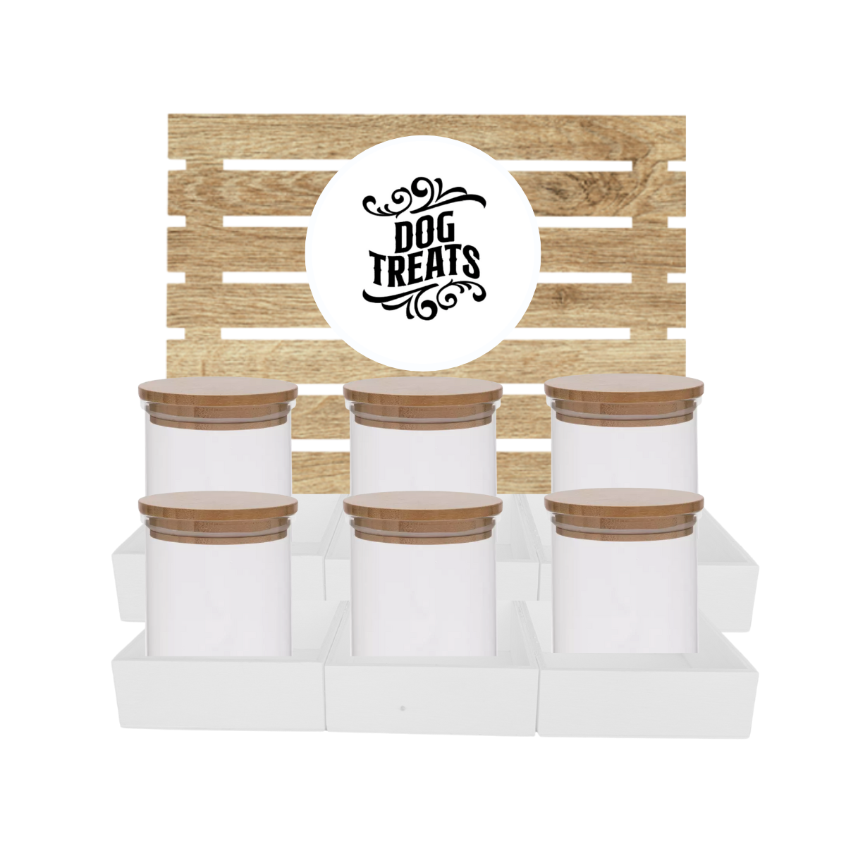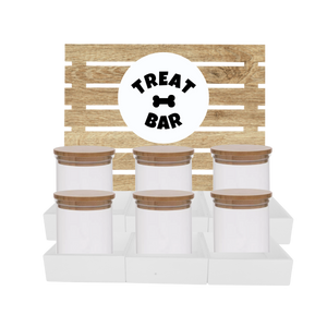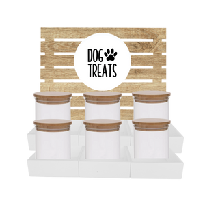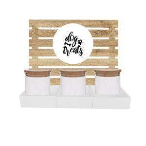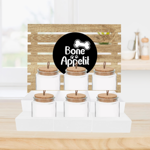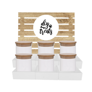 White Dog Treat Jar Bar w/ Bamboo Canisters