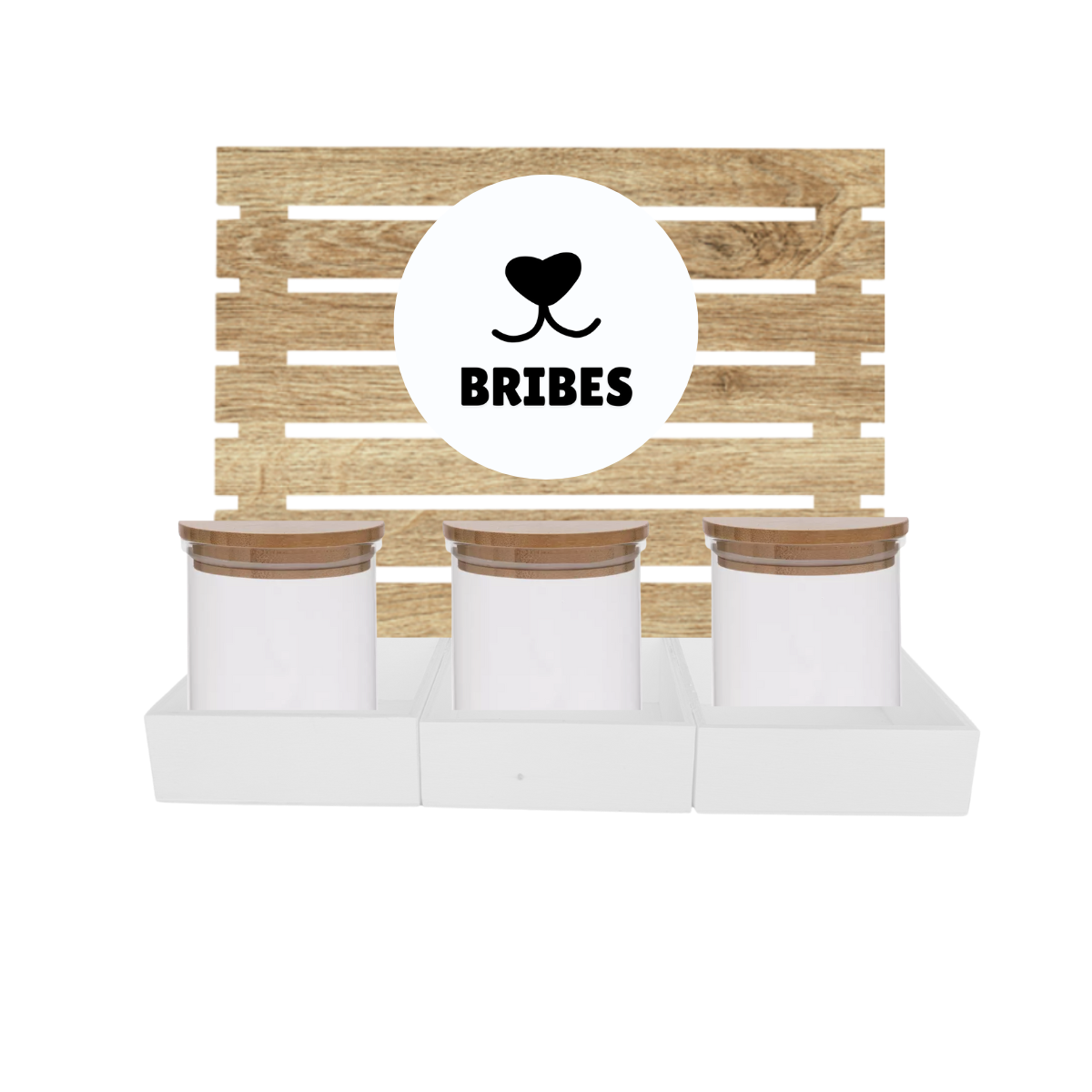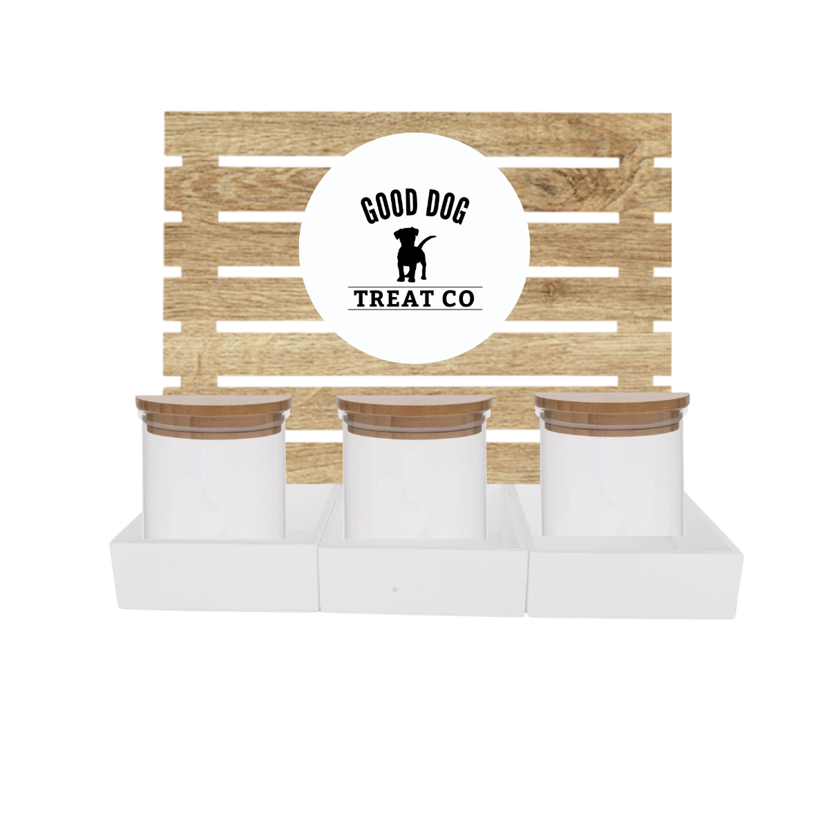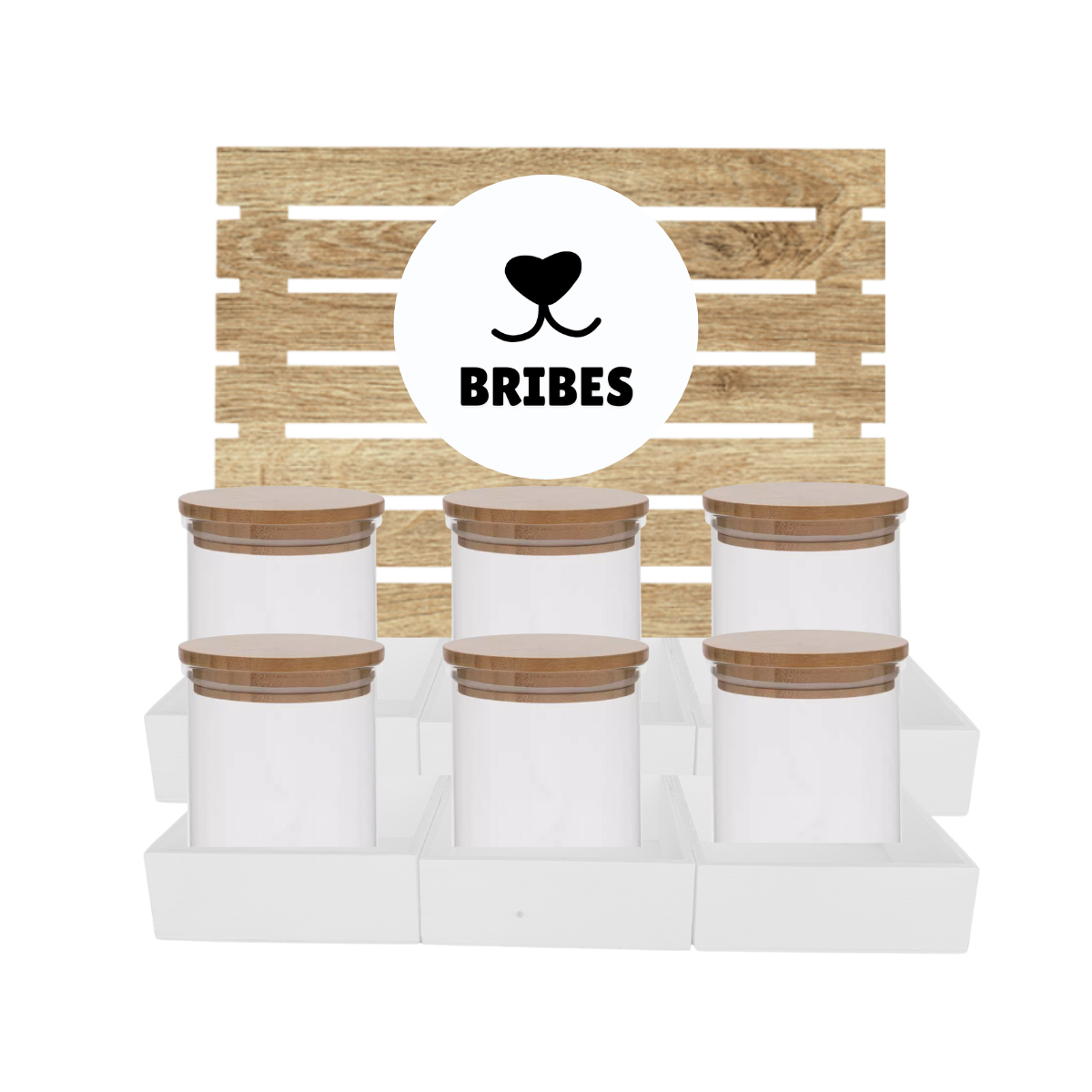 White Dog Treat Jar Bar w/ Bamboo Canisters