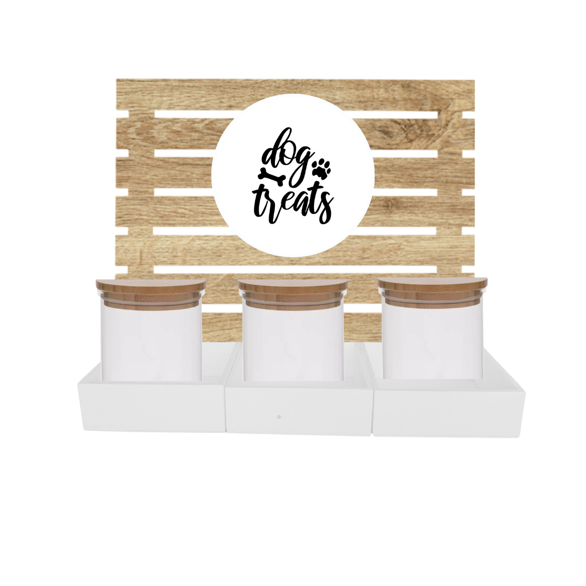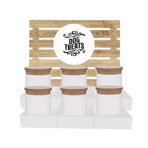 Featuring 3 or 6 shelf in white chalk & distressed oak finish with clear canister jars for easy treat spotting, it keeps snacks fresh and ready for tail-wagging moments. Organized and fun, it’s the perfect way to spoil your pet with a variety of tasty bites all in one place
