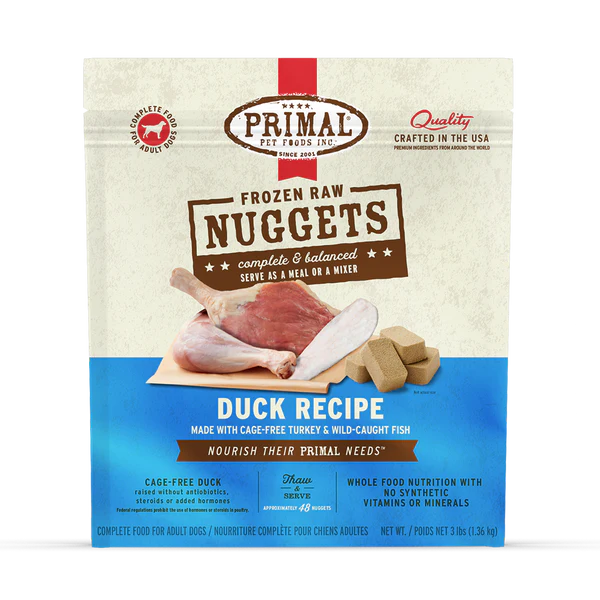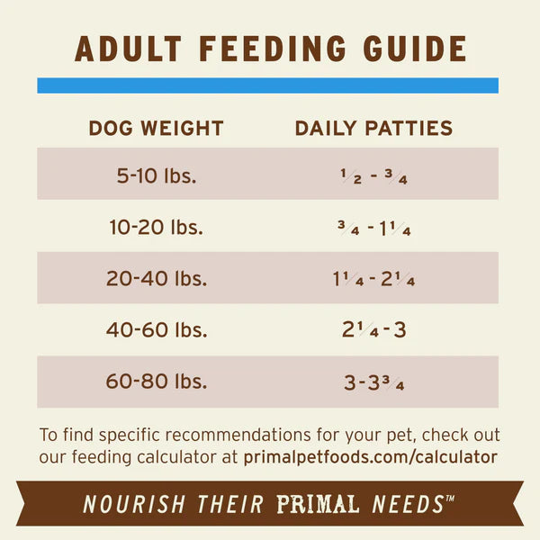 Only serve Primal raw foods when completely thawed—frozen foods can be difficult for animals to digest. Never microwave any pet food.