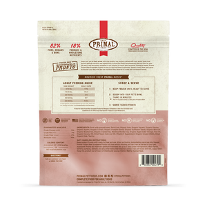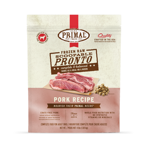 Pork (with ground bone), Pork Livers, Organic Kale, Organic Squash, Organic Parsley, Organic Apples, Organic Carrots, Organic Pumpkin Seeds, Organic Sunflower Seeds, Organic Broccoli, Organic Blueberries, Organic Cranberries, Montmorillonite Clay, Organic Apple Cider Vinegar, Fish Oil, Organic Coconut Oil, Dried Yeast, Cod Liver Oil, Vitamin E Supplement, Organic Ground Alfalfa, Dried Organic Kelp, Taurine