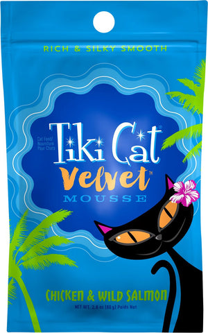 Nourish your feline friend with the complete and balanced nutrition of Tiki Cat Velvet Mousse Chicken & Salmon Grain-Free Wet Cat Food. Featuring chicken and salmon in the first ingredients for a high-quality source of protein and amino acids to help build and maintain your catïïïïïïïïs muscles. It contains chicken broth for added moisture and protein your cat needs. It also includes vitamins and minerals such as taurine, an essential amino acid to help support your kittyïïïïïïïïs growth and vision. This grain-free mousse is great for all life stages and does not contain white potatoes, corn, wheat or rice for a low carbohydrate your pal will love.