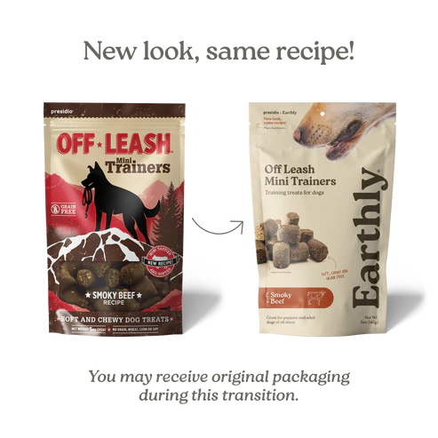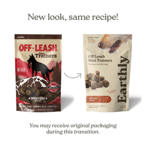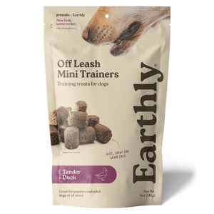 Professional dog trainers will tell you that the perfect training treats follow the three S's: soft, smelly and small. Treats like these ensure your pet will stay motivated and focused during your training session. We designed Off Leash Mini Trainers with this in mind, while making sure to only use healthy ingredients.Â