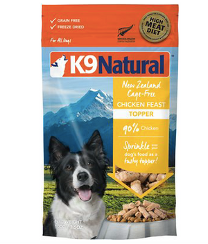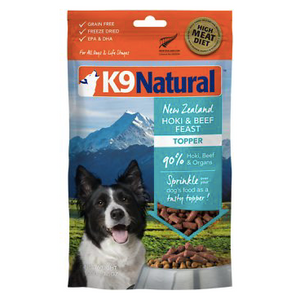 K9 Natural Toppers are all the goodness of our freeze dried range in a smaller, more convenient pack. Like all K9 Natural food, they’re packed with New Zealand wholefood ingredients. Developed to simply sprinkle over your dog’s existing diet, whatever that may be, Toppers offer a nutrient dense high meat boost and are a great way to entice picky eaters.