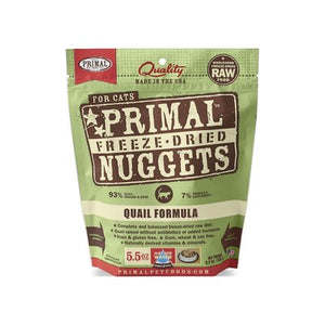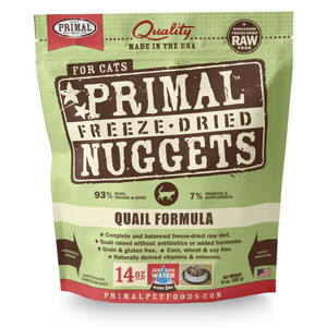 Give your furry friend a complete and balanced diet with Primal Quail Formula Nuggets Grain-Free Raw Freeze-Dried Cat Food. It features antibiotic and steroid free quail as the first ingredient with fresh ground bone for calcium supplementation. This freeze-dried food includes a combination of ingredients that offer optimum levels of the amino acids, essential fatty acids, natural-occurring enzymes, and necessary vitamins and minerals. Made in the USA, Primal Quail Formula Nuggets Grain-Free Raw Freeze-Dried Cat Food contains no grain, gluten, corn, wheat or soy because your kitty deserves nothing but the best.