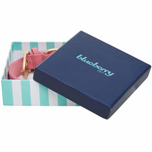 Crafted with high-quality genuine leather, this collar offers unique features and durability. The attention to detail, from the roller-buckle hardware to the engraved Blueberry Pet tag, showcases our commitment to quality.