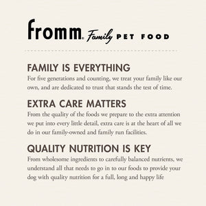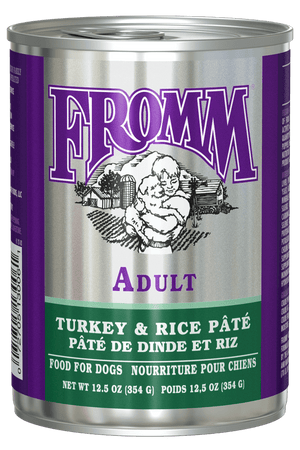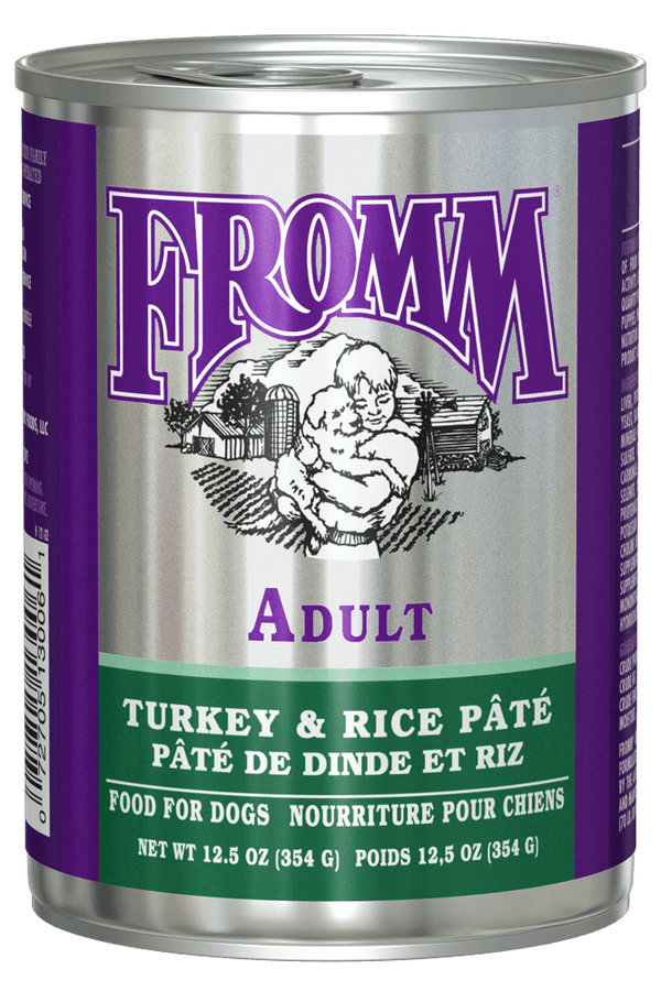 Fromm® Adult Turkey & Rice Pâté Food for Dogs is formulated to meet the nutritional levels established by the AAFCO Dog Food Nutrient Profiles for growth and maintenance, including growth of large size dogs (70 lb. or more as an adult).