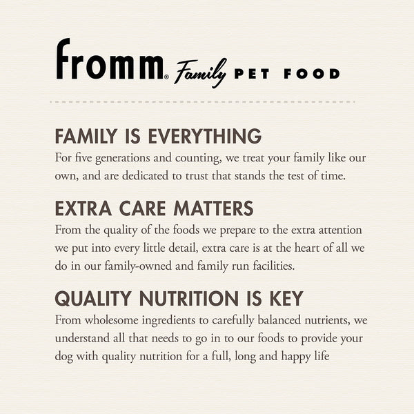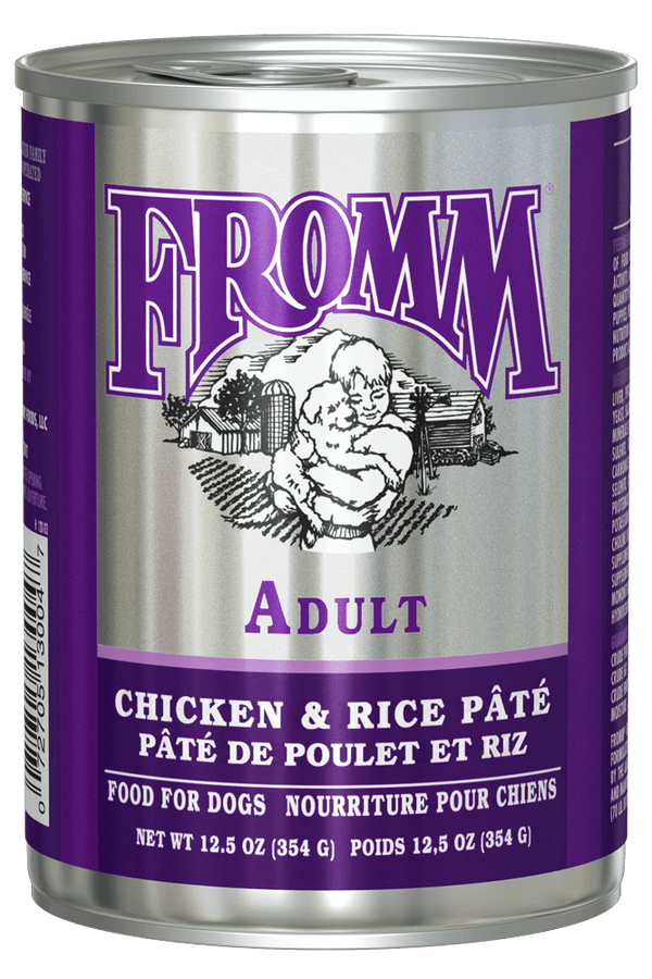 Fromm® Adult Chicken & Rice Pâté Food for Dogs is formulated to meet the nutritional levels established by the AAFCO Dog Food Nutrient Profiles for growth and maintenance, including growth of large size dogs (70 lb. or more as an adult).