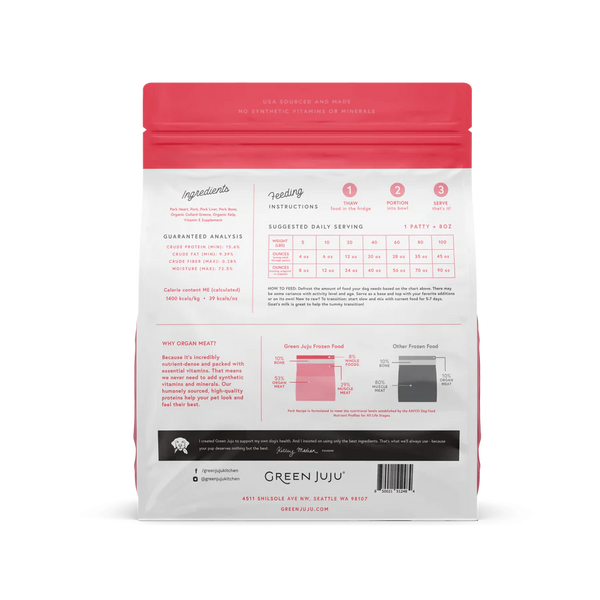 Green Juju Frozen Raw Food Diet Pork Recipe