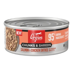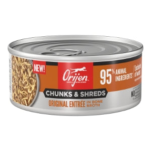 Nourish your cat completely with hearty WholePrey animal ingredients and real shreds of meat, poultry or fish in ORIJEN™ Chunks & Shreds Wet Cat Food! Cats are obligate carnivores, so they thrive off a diet packed with animal ingredients. That’s why our Beef & Tuna Entrée recipe includes a whopping 95% animal ingredients1 to provide your cat with the Biologically Appropriate nourishment they were born to eat. This diet also includes succulent WholePrey ingredients like beef kidney to provide your cat with rich and varied nutrients. Bone broth helps support your cat’s hydration, while also adding tempting flavor. Nourish your cat with the texture and variety of raw animal ingredients packed into every can of ORIJEN™ Chunks & Shreds.