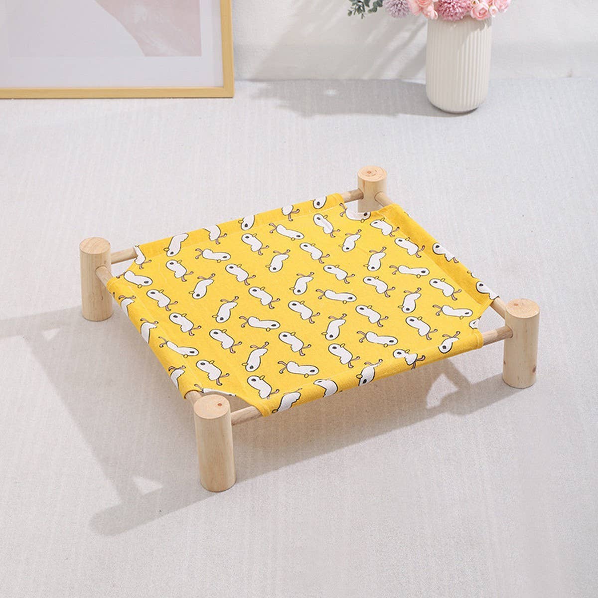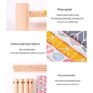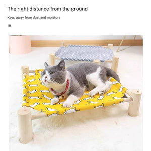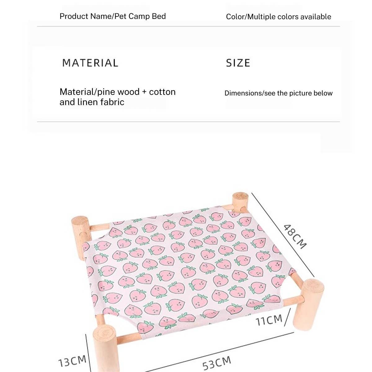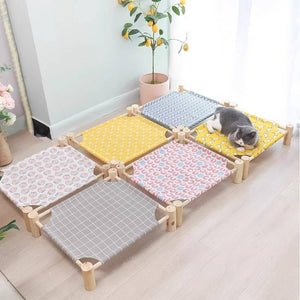 -Product type: Pet camping bed -Material: pine wood + cotton and linen fabric -Size: See picture