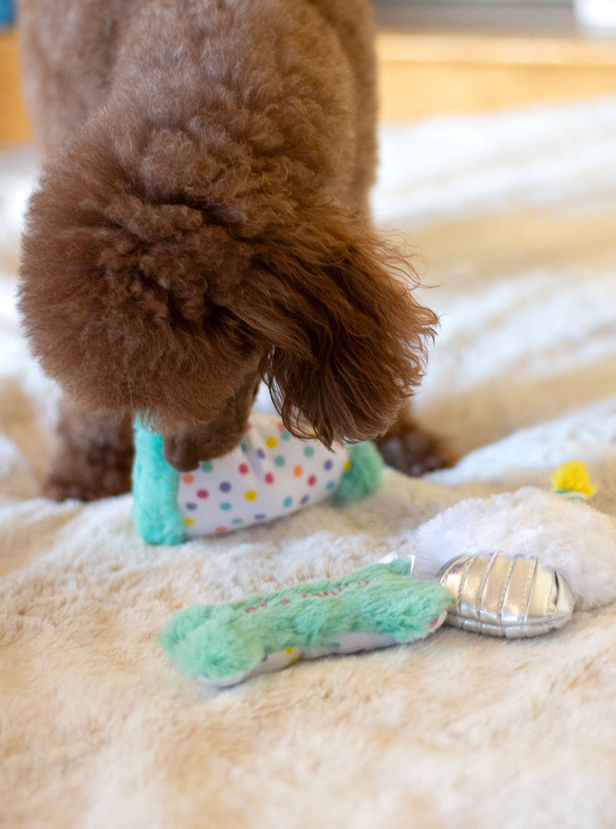 Triple the squeaks, triple the fun! This adorable trio of ThoozyPet plush toys is designed to bring joy to small pups with big birthday energy. Whether your dog loves to toss, chase, or cuddle, these cute little toys are perfect for playful paws. Each toy is thoughtfully crafted with securely sewn seams, ensuring durability even during the most enthusiastic play sessions. You can rest easy knowing all materials are completely safe and non-toxic—keeping your furry friend safe while they enjoy hours of squeaky fun. Ideal for smaller breeds, these lightweight and easy-to-carry toys make the perfect birthday gift or everyday treat for your beloved pup!