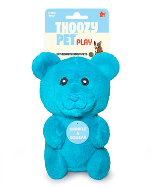 A sweet treat for playtime! These soft and squishy ThoozyPet Gummy Bears are the cutest (and squeakiest) addition to your toy bin. Available in two snuggly sizes—6” and 10”—and five vibrant colors, these plush pals are perfect for dogs who love to cuddle, toss, and chew. Each bear is packed with a squeaker and crinkle paper to keep tails wagging and senses engaged. They may look sweet, but they’re made for serious fun—no sugar rush required!