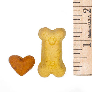 Bone Ingredients: Dried Bakery Product,Wheat Flour, Oat Fiber, Canola Oil, Cheddar Cheese, Natural Butter Flavor, Whole Egg. Heart Ingredients: Dried Bakery Product, Wheat Flour, Vegetable Glycerin, Canola Oil, Tomato Powder, Tomato Paste, Lactic Acid, Whole Egg, MIxed Tocopherols. Guaranteed Analysis: Crude Protein: 10% min Crude Fat: 8% min Crude Fiber:...