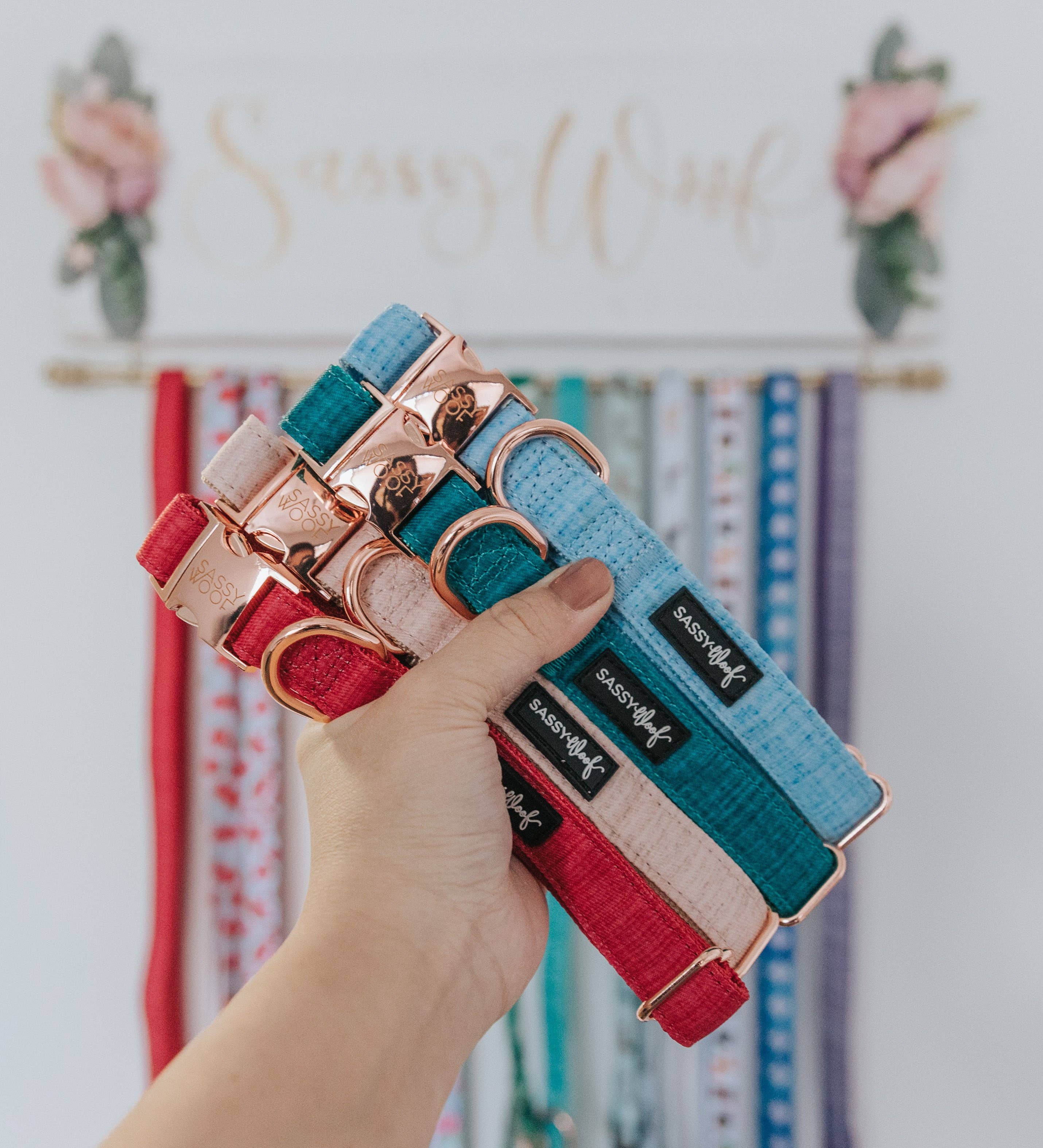 Perfect for every season, this stunning collection will look great on any pup. This vibrant, but subtle blue will have your pup feeling playful and posh. Pair this collar with our ‘Blumond’ bundle or mix and match with our other collections.