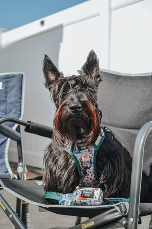 * Complete the set with our matching step in harness, leash, collar, and picnic blanket!
