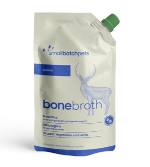 Top off your pet's meals the wholesome and nutritious way with Smallbatch Bone Broth! Smallbatch offers both frozen and shelf-stable bone broth to add to your pet's meals for a tasty and nutritious boost! Smallbatch only uses organic whole foods and premium-quality USA-sourced proteins in their formulas. Featured limited-ingredient recipe...