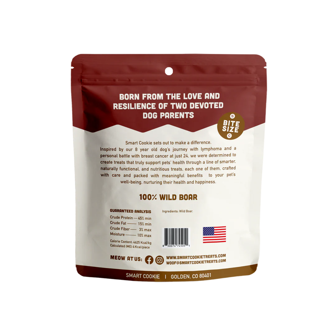 Wild boar from the rugged Texas Hill Country fixed with nutrient loaded sweet potatoes. These dog treats are made with novel ingredients from the Texas Hill Country, ethically sourced single animal protein, and handcrafted in our Colorado kitchen.