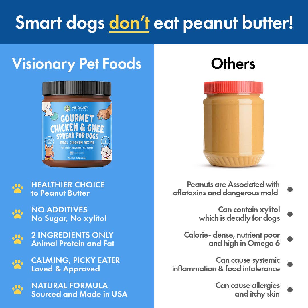 Chicken Meat Spread - A healthier choice than peanut butter Dog peanut butter can have several harmful components: Aflatoxins – These are naturally occurring toxins from mold found in peanuts. Even at low levels, they can be harmful over time. High Omega-6 Fatty Acids – Excessive omega-6s contribute to inflammation,...
