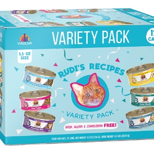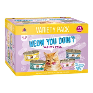 Outback Grill, Marbella Paella, Asian Fusion, Mack & Jack, Meow Luau, Mideast Feast, Polynesian Bbq, Paw Lickin' Chicken, Grandma's Chicken Soup, Funky Chunky, Green Eggs & Chicken, Amazon Livin', Meow You Doin'? Variety Pack, Rudi's Recipes Variety Pack, Seafood & Eat It Variety Pack |