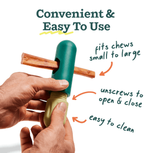The easy-to-use, adjustable design fits chews of all sizes, and it’s a perfect fit with all-natural Woof Collagen Chews!