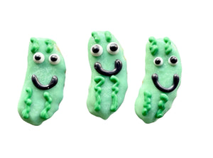 Mini Tickle my Pickle makes EveryPUPPY smile! Cute YumYum4DOGS unique design in our classic peanut butter recipe. Also have a #1 prick cactus to make owners lol! 🤣 This treat is a YumYum4DOGS BEST SELLER! Handcrafted in yumyum4dogs classic peanut butter recipe, these yummies are baked with love in small batches from only quality natural ingredients that pup & owner will love! TREATS are approximately 2 inches. Treats vary. Store treats at no greater than 72 degrees out of direct light to avoid meltage. 6-12 month shelf life if stored properly (out of direct light, in cool, dry area) Ingredients: Peanut Butter, Whole Wheat Flour, Canola Oil, Cinnamon, Rolled oats, Honey, Yogurt & love! Crude Analysis: Crude Protein (min.)................13.0% Crude Fat (min.)......................10.0% Crude Fiber (max.)...................2.2% Moisture (max.).......................3.5%